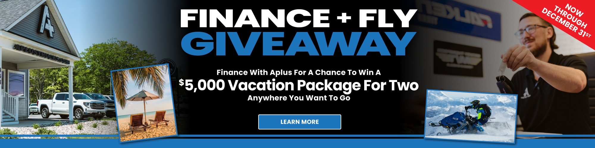 From November 1 to December 31, 2025, when you finance with us, you'll be automatically entered to win a $5,000 dream vacation package of your choice for two - to any destination of your choice!